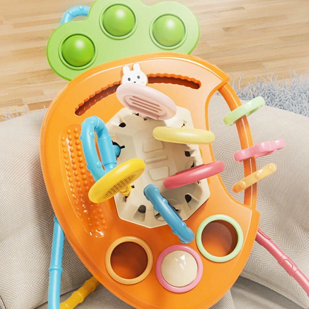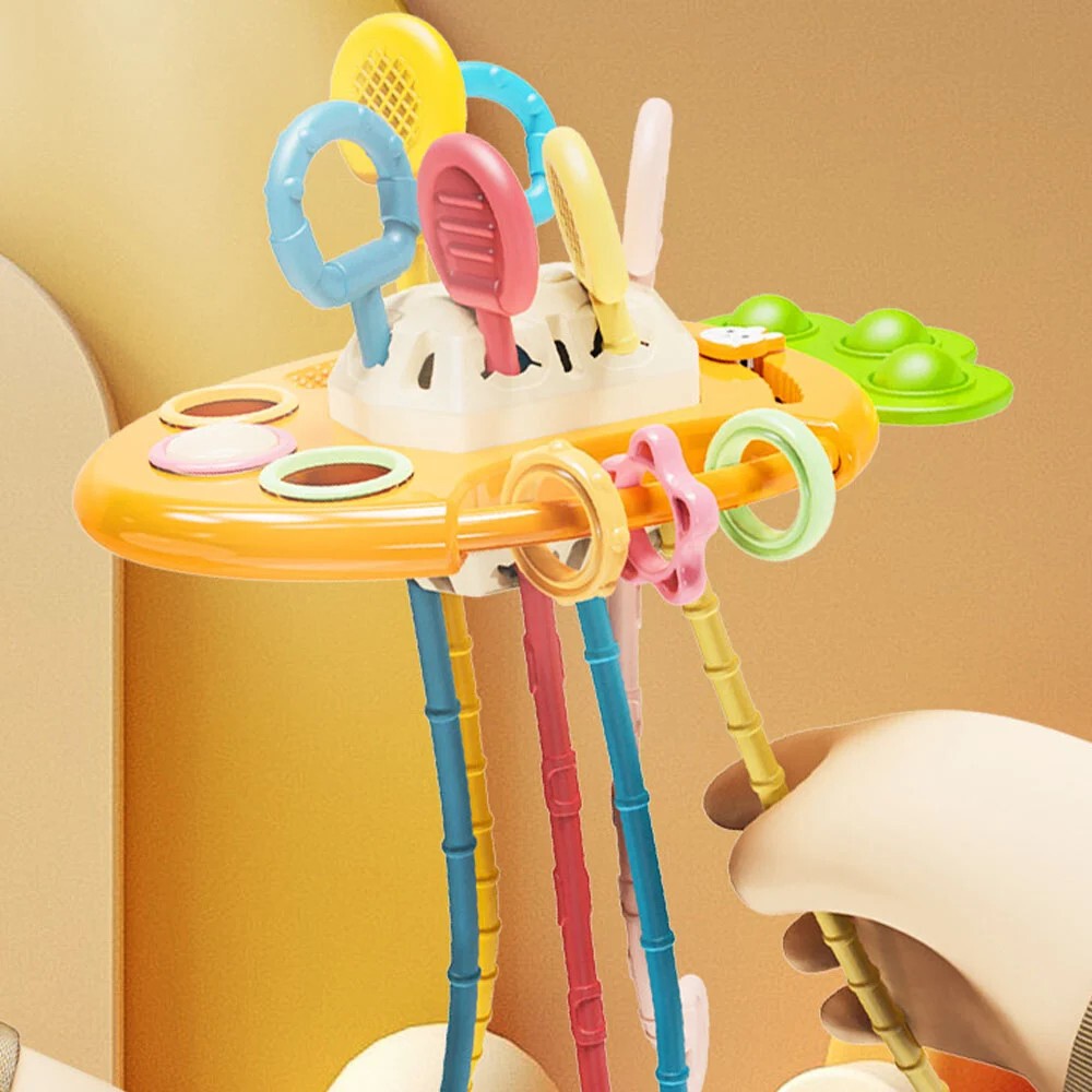 Ofera-i bebelusului tau aceasta jucarie menita sa ii dezvolte coordonarea mana-ochi dar si sa stimuleze simtul tactil si nu numai.