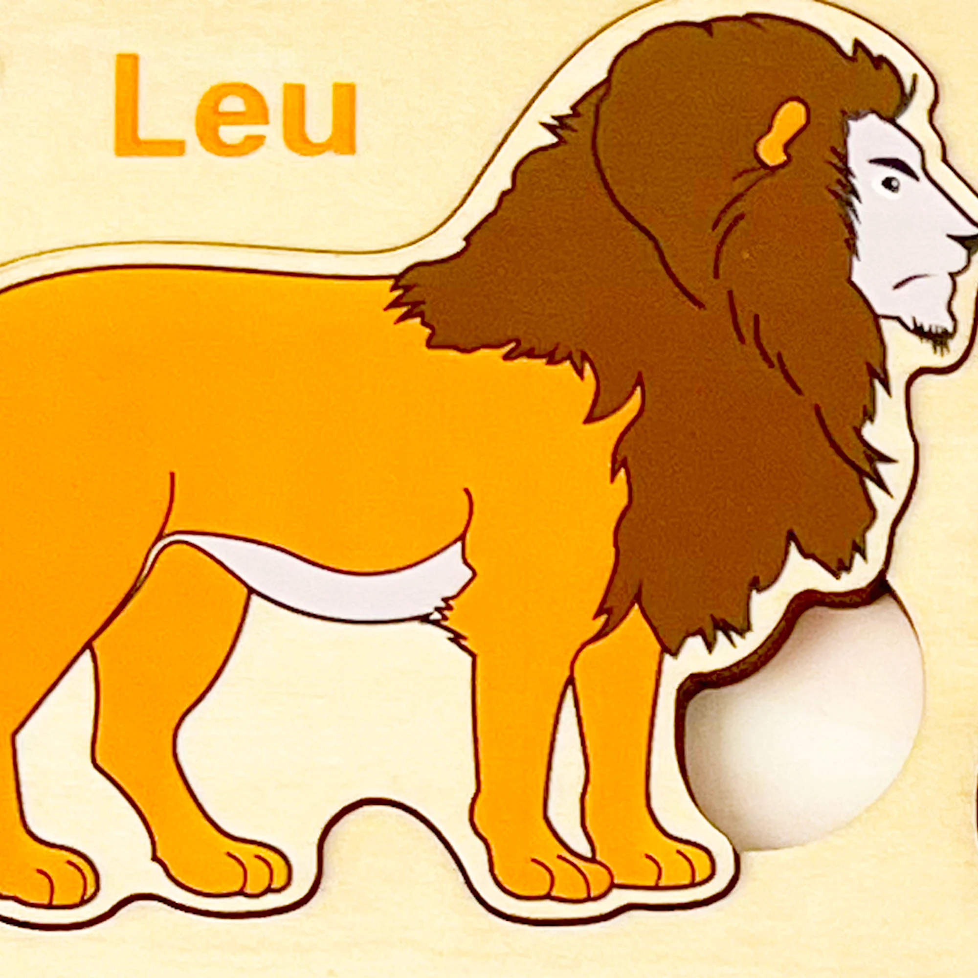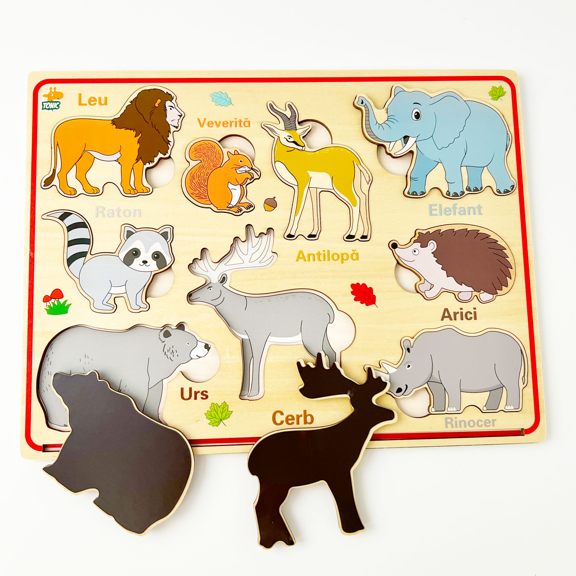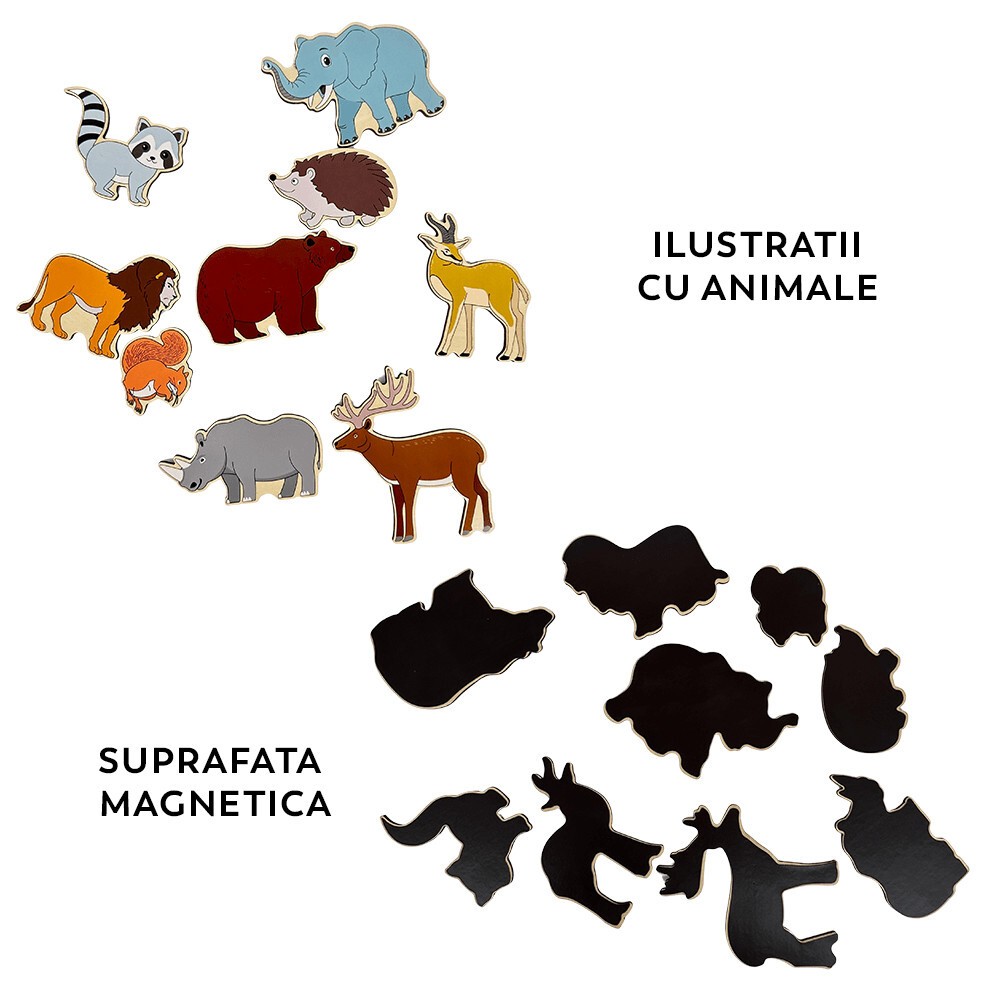 Puzzle magnetic din lemn in Limba Romana, Animale salbatice