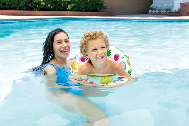 Înotul va fi o bucurie cu acest colac gonflabil cu printuri vesele si jucause de la Intex!