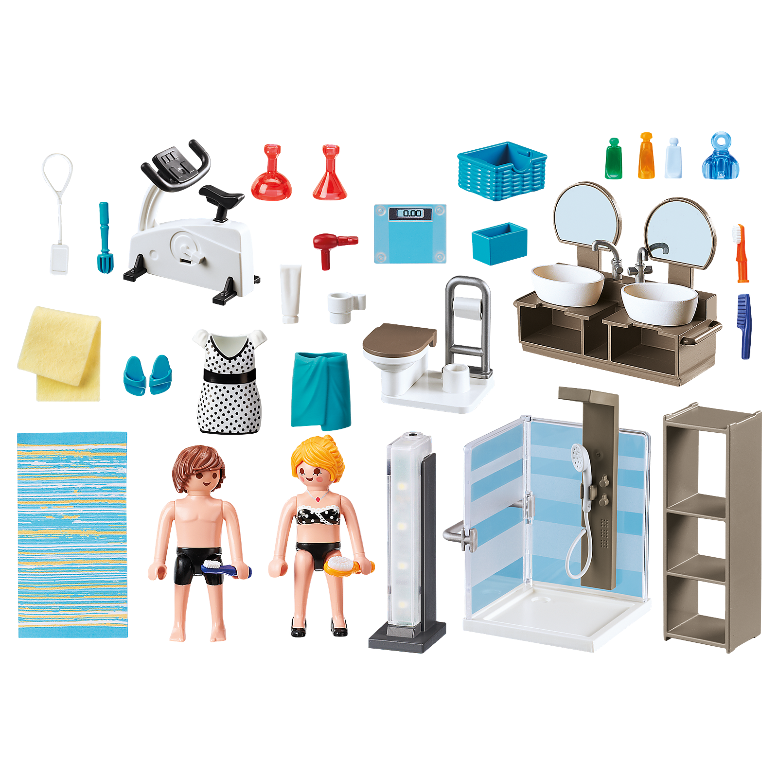 Baia din Casa Moderna de la Playmobil reprezinta o oaza pentru relaxare. Poti sta aici sa te relaxezi, sa te faci frumoasa si chiar sa iti instalezi si o bicicleta de fitness! In plus, ai si chiuveta dubla, astfel incat sotul tau sa aiba propriul lui spatiu. Mai intai de toate, o plimbare cu bicicleta si apoi un dus revigorant!