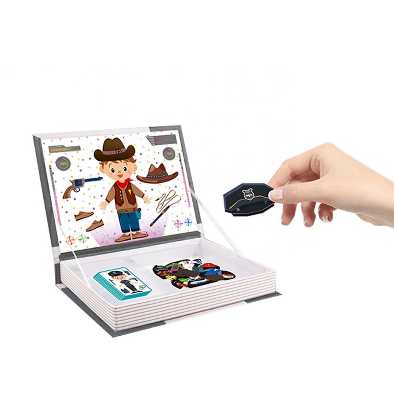 Jocuri magnetice pentru copii – Carte Magnetica Jocuri de Rol si Meserii (pompier, doctor, bucatar, politist, pistolar, etc) cu 101 piese accesorii, contine: