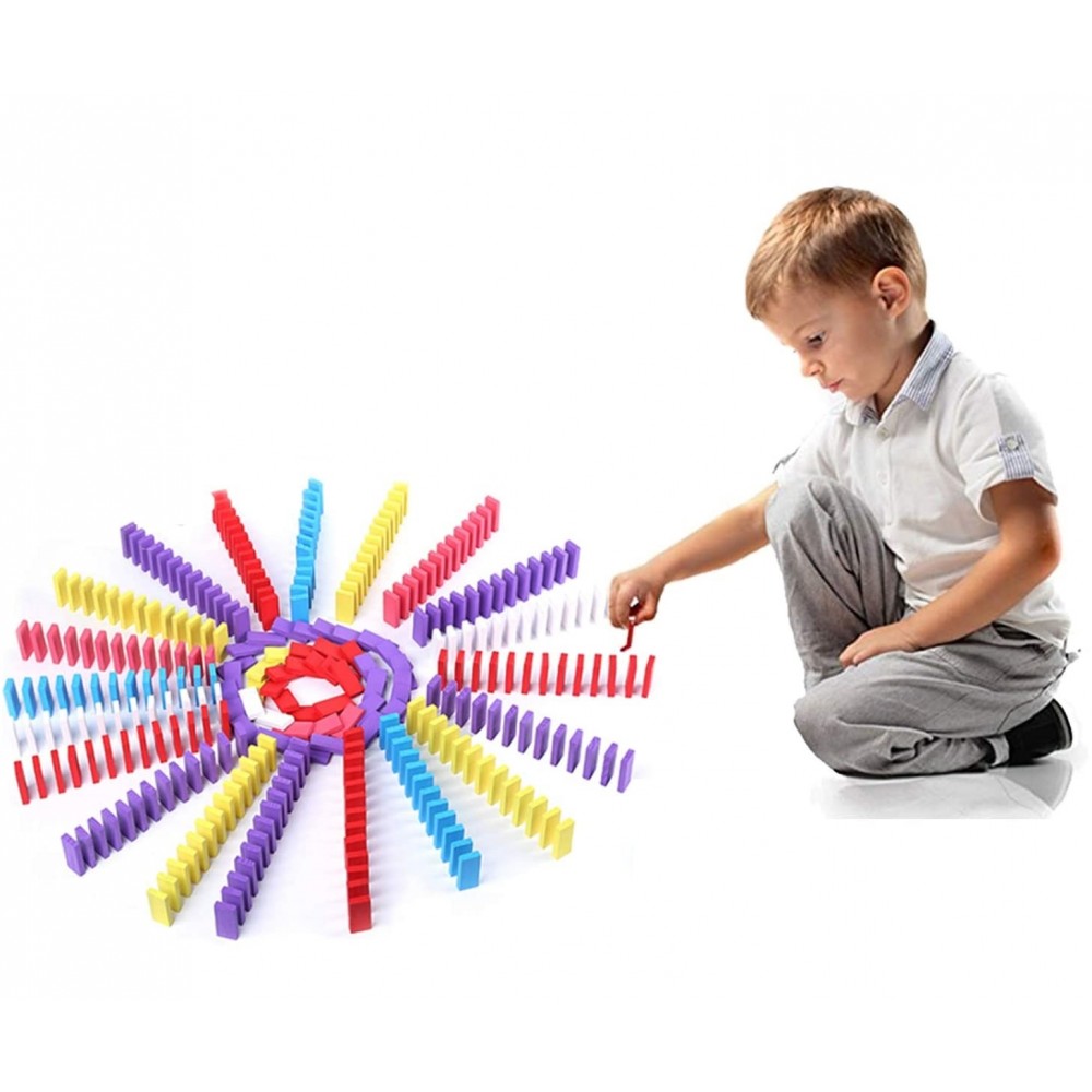 Copiii le pot aranja pe toate la rând, apoi va impinge prima piesa din domino si copilul va observa notiunea de cauza – efect al pieselor care se prabusesc pe rand.Jocul clasic de Domino dezvolta logica copiilor, percepția culorii si coordonarea mâinii-ochi, imbogatirea imaginatiei si capacitatea operaționala.