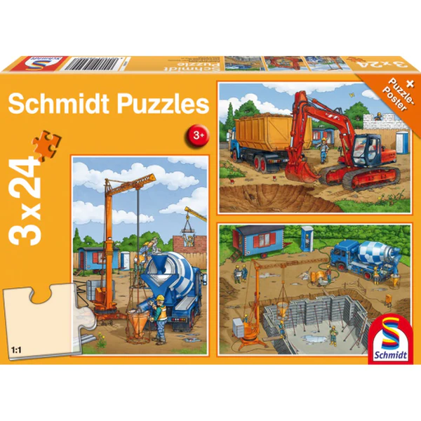 Descoperă bucuria construirii cu Puzzle Schmidt – Lucrări de Construcție în Față! Acest set captivant include trei puzzle-uri diferite, fiecare cu câte 24 de piese, perfect pentru copiii cu vârste de peste 3 ani. Fiecare puzzle prezintă scene vibrante și detaliate de pe șantierele de construcție, stimulând imaginația și coordonarea ochi-mână a celor mici. Piesele sunt realizate din carton de înaltă calitate, asigurând durabilitate și o potrivire perfectă. Ideal pentru sesiuni educative și distractive, acest puzzle este un cadou minunat pentru micii pasionați de construcții.