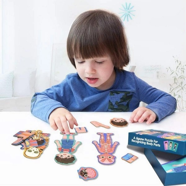 30 de piese de puzzle pentru reconstruirea fiecarui card, implicit a fiecareia dintre componentele corpului uman.