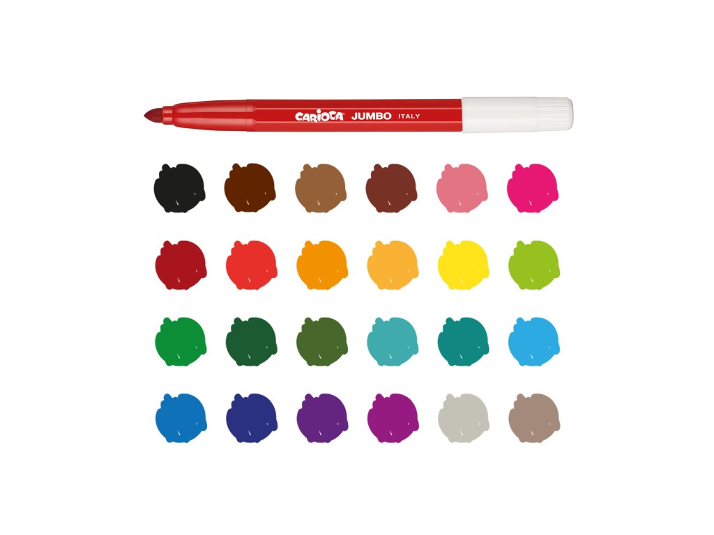 Alege pentru copiii tai acest Set Carioca Jumbo 24 buc/set pentru desene de un efect wow! Au o acoperire mare, un finish stralucitor si se utilizeaza foarte usor.