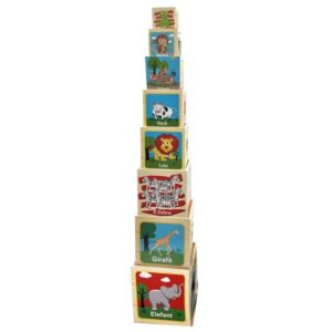 Set cuburi din lemn, Gradina Zoologica, 100 piese